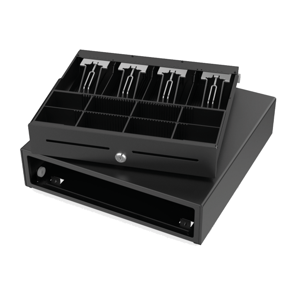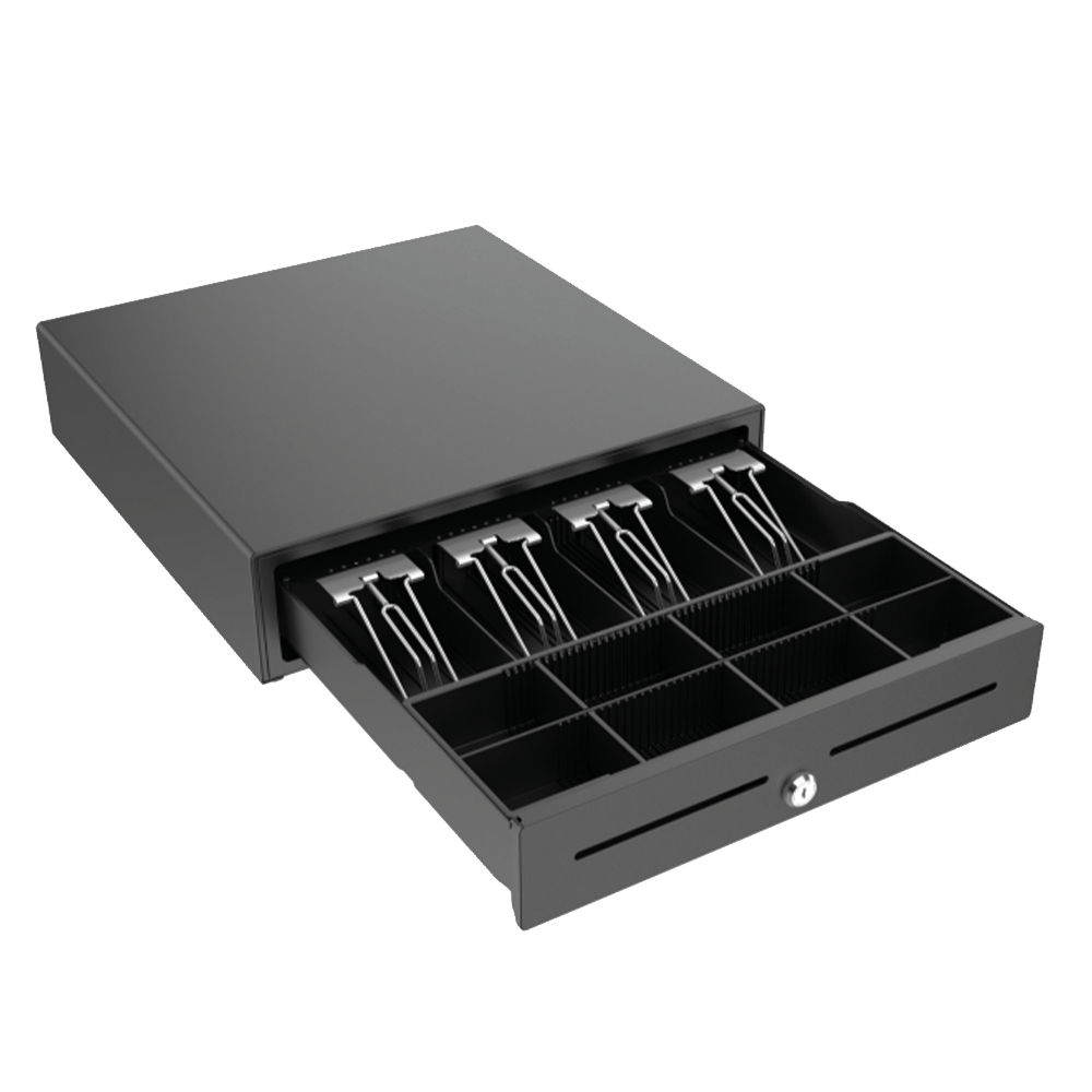 Con gaveta extraíble y pisabilletes metálicos. Compatible con cualquier impresora de tickets con conexión RJ11