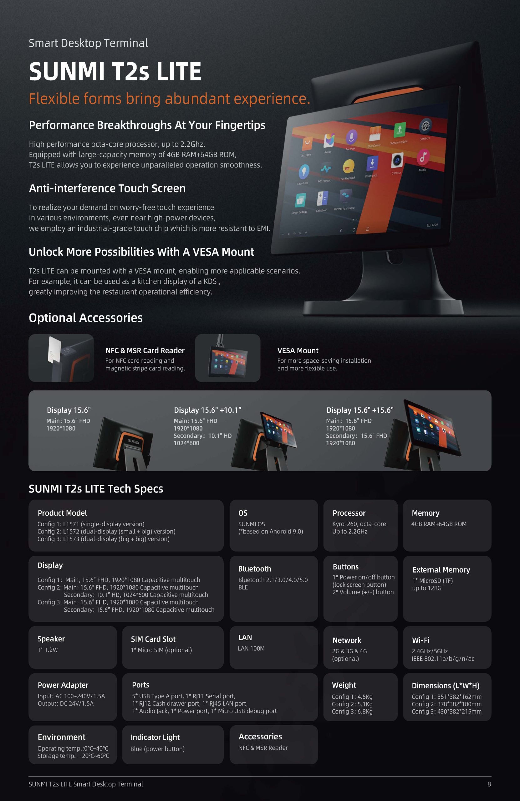 Sunmi T2s Lite, A9.0, 15.6″ mono screen, 4GB+64GB